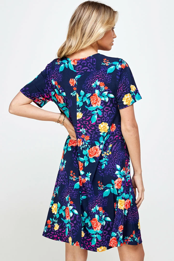 - Short sleeve and soft round-neckline short dress and 37 inches in length.