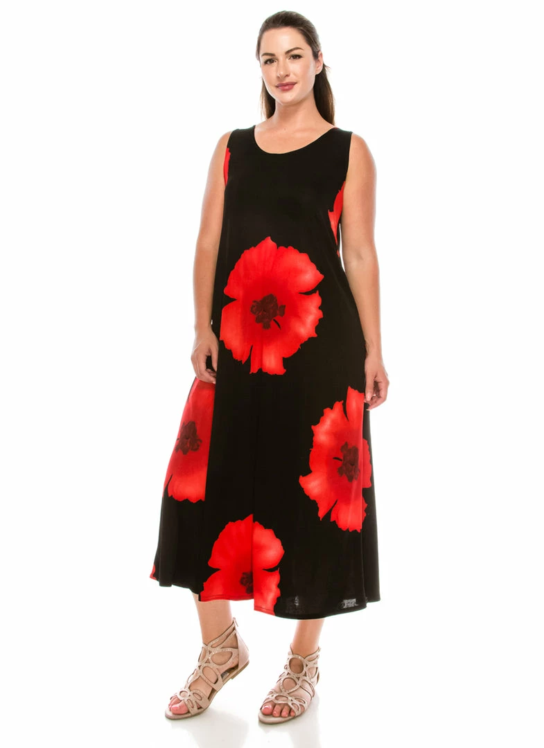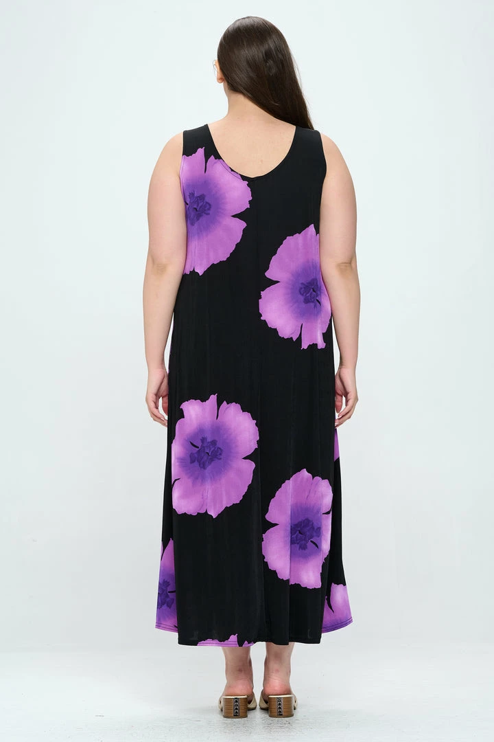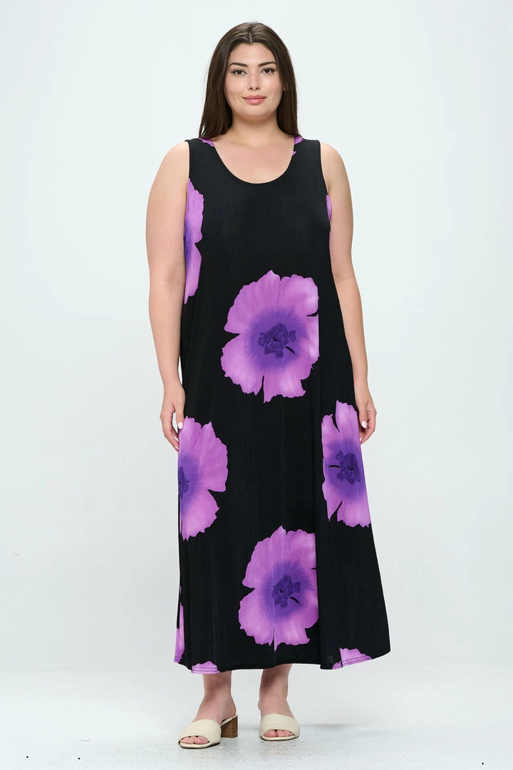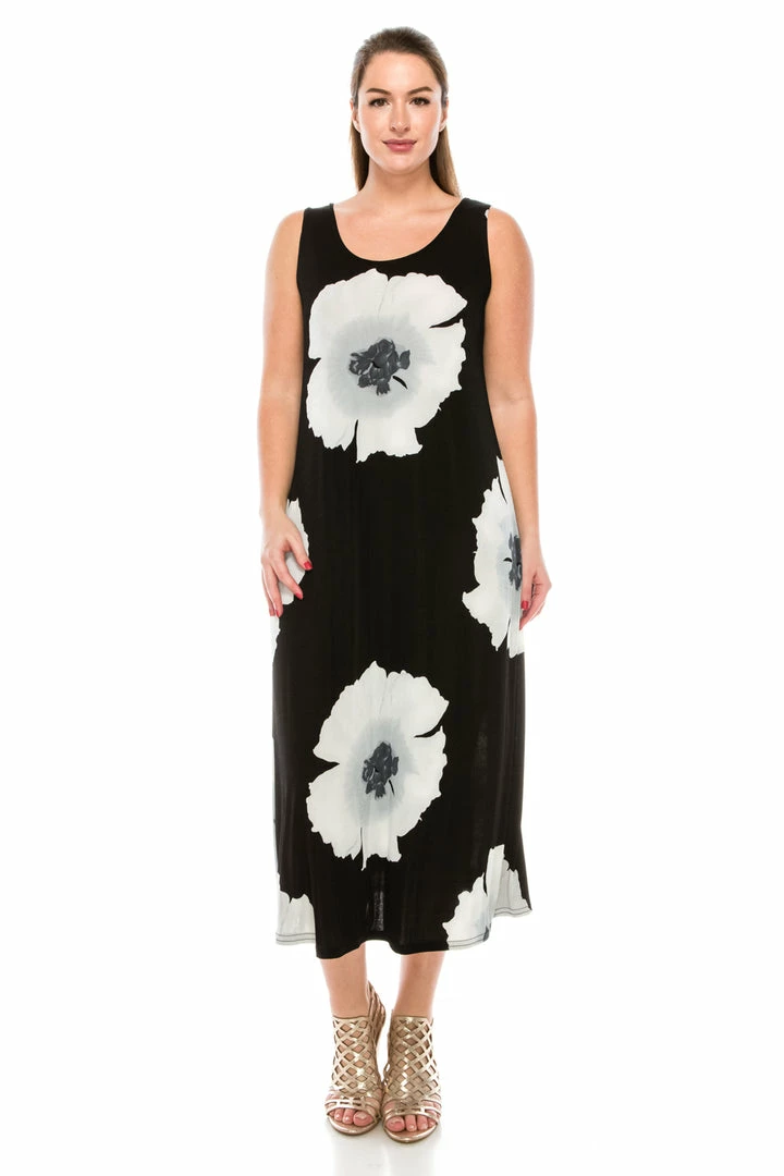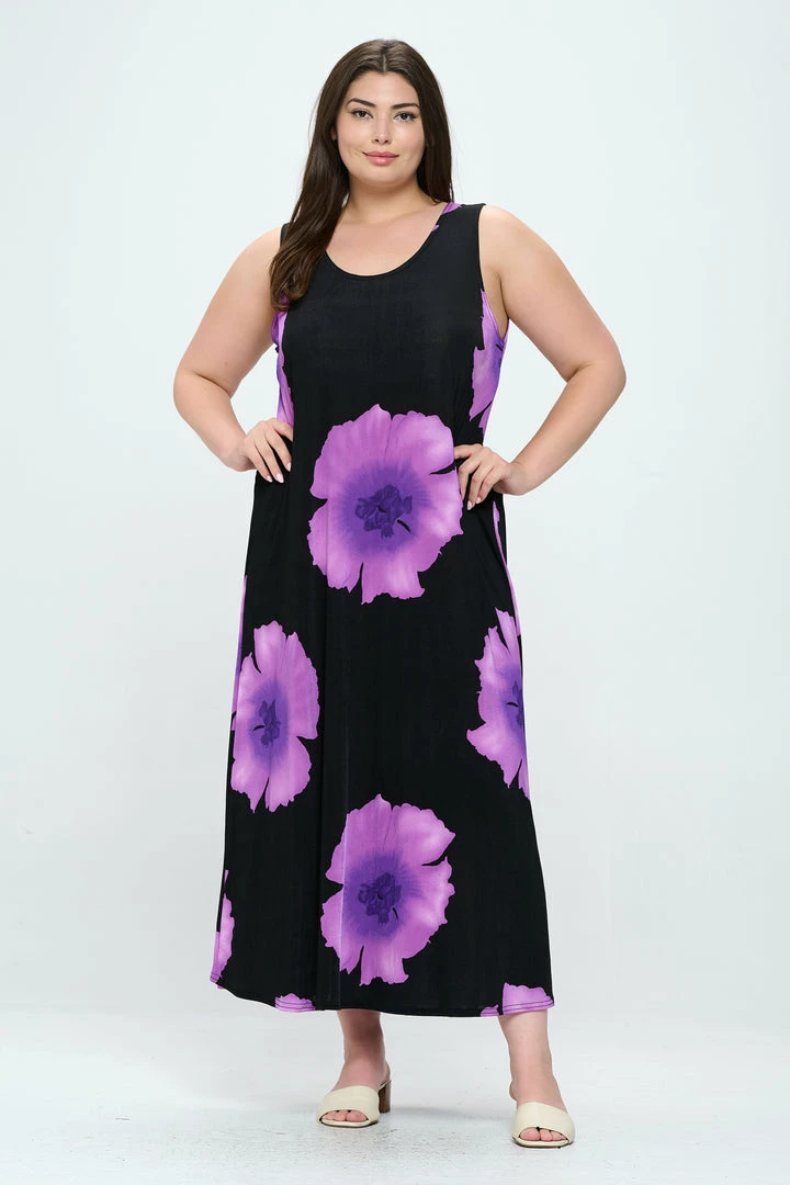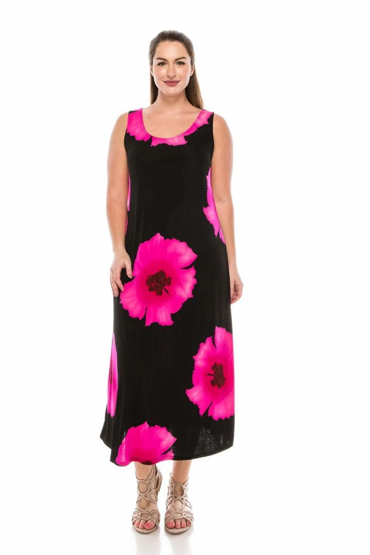 Plus Size Jostar Women’s Stretchy Tank Long Dress Sleeveless Plus Print, 700BN-TXP-W113