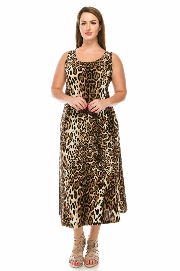 Plus Size Jostar Women’s Stretchy Tank Long Dress Sleeveless Plus Print, 700BN-TXP-W757