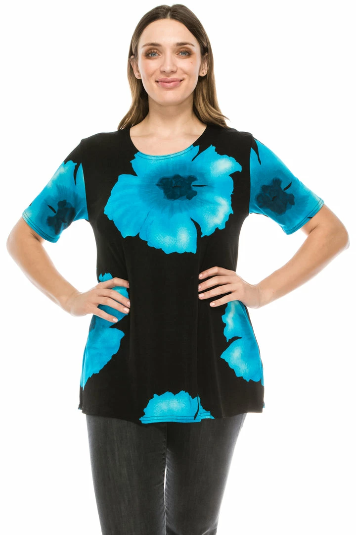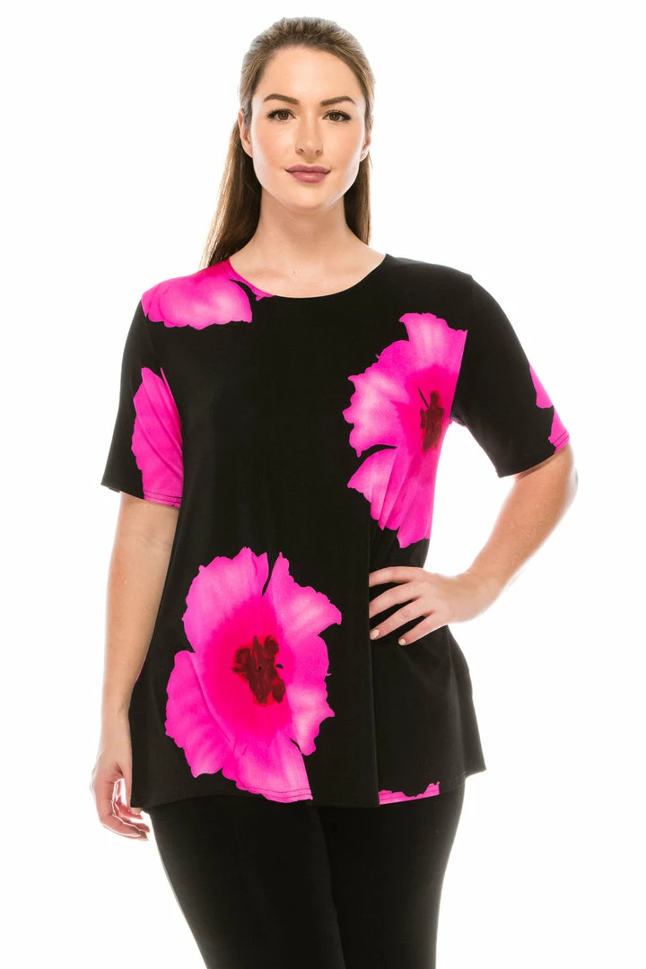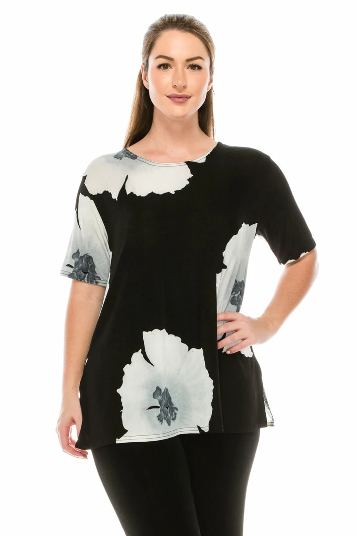 Plus Size Jostar Women’s Stretchy Vented Tunic Top Short Sleeve Plus, 242BN-SXP-W113