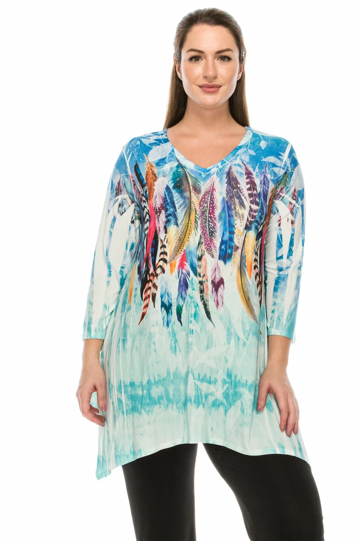 Plus Size Jostar Women’s HIT V-Neck Binding Top 3/4 Sleeve Sublimation Plus, 313HT-QXU-R-U052
