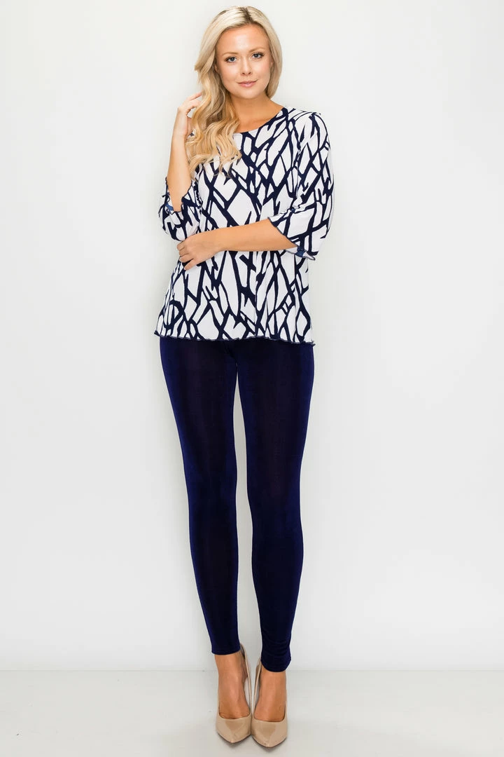 - 3/4 sleeves and soft round-neckline with Merrow bottom.