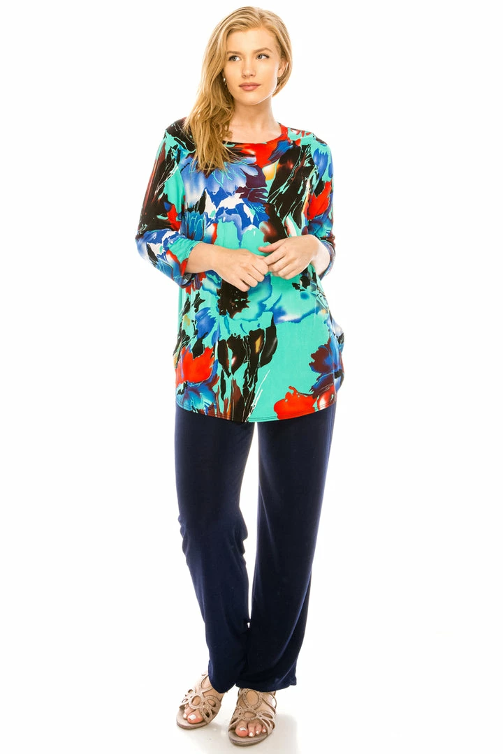 Quarter Sleeves Jostar Women’s Stretchy Rounded Bottom Tunic Top Quarter Sleeve Print, 346BN-QP-W081