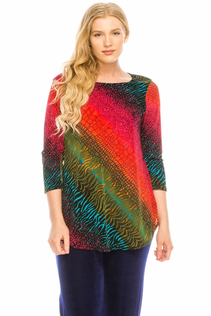 Quarter Sleeves Jostar Women’s Stretchy Rounded Bottom Tunic Top Quarter Sleeve Print-346BN-QRP1-W182
