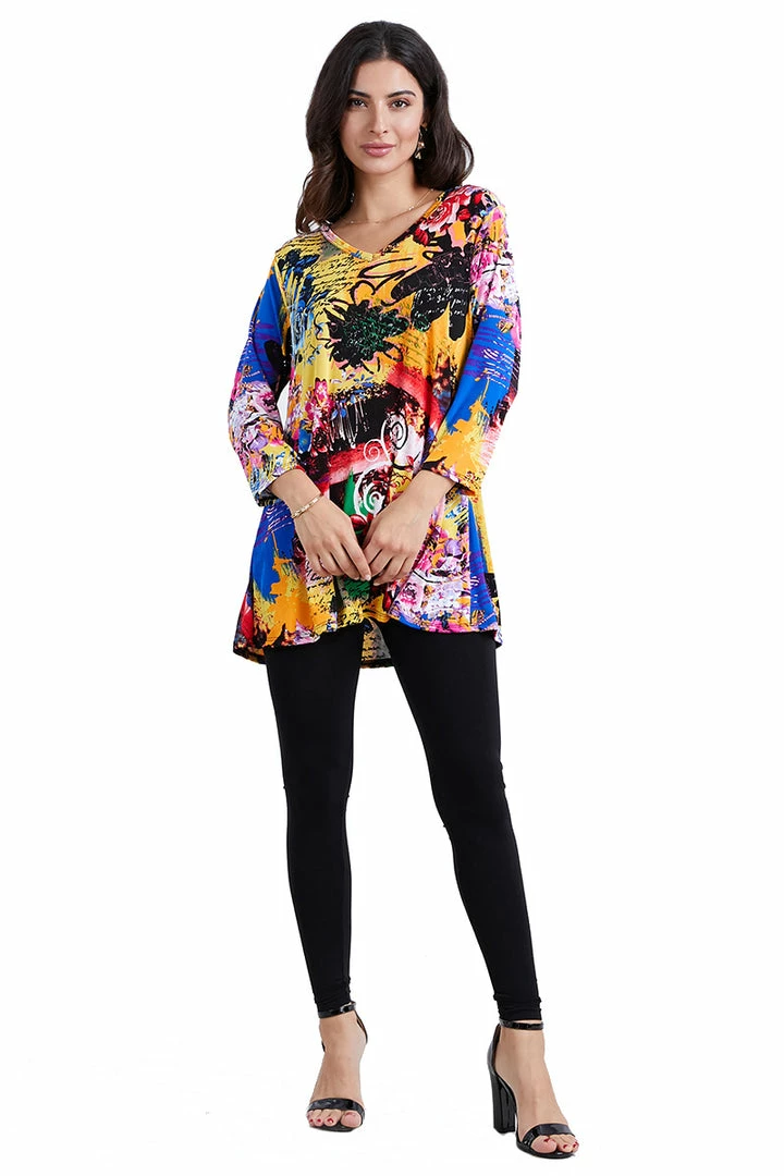 Quarter Sleeves Jostar Women’s Stretchy V-Nk Binding Tunic Top Quarter Sleeve Print-347BN-QRP1-W169