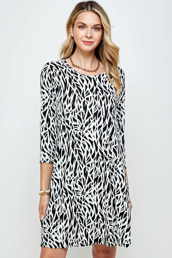 Short Length Jostar Women’s Stretchy Missy Dress Quarter Sleeve Print-704BN-QRP1-W289
