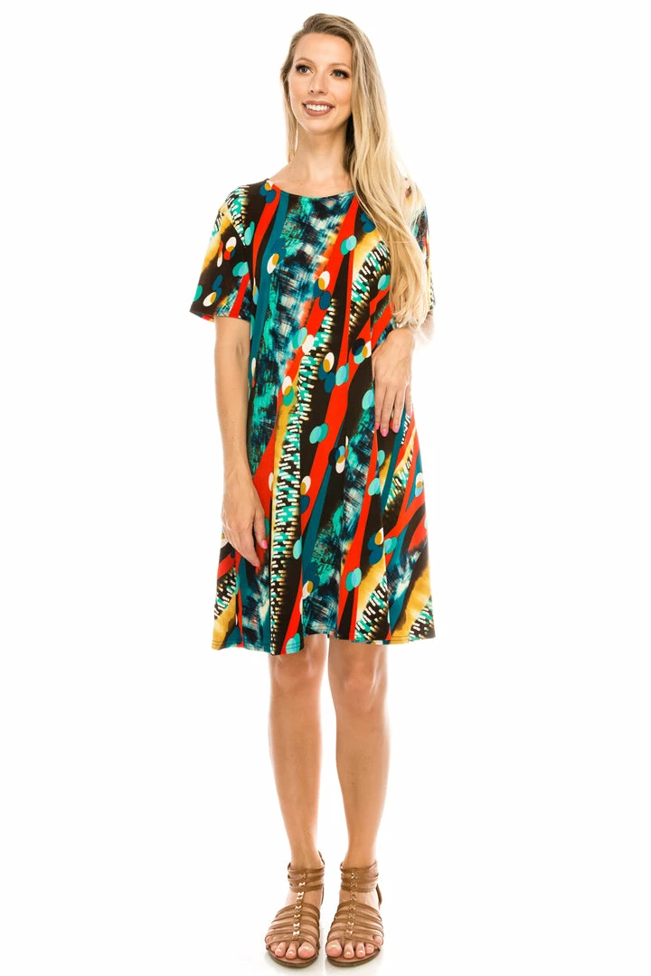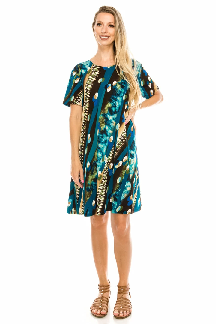 Short Length Jostar Women’s Stretchy Missy Dress Short Sleeve Print, 704BN-SP-W175