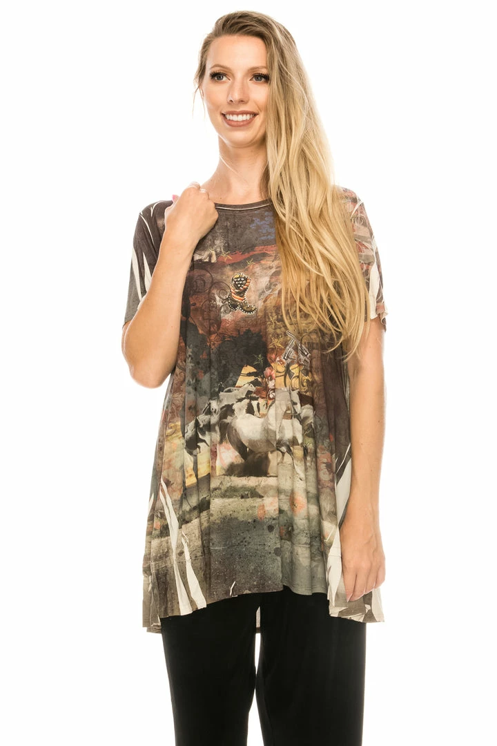HIT Bottom Layered Top with a variety of prints available.Hand or machine wash in cold water.Made in USA.94% Polyester, 6% Spandex.