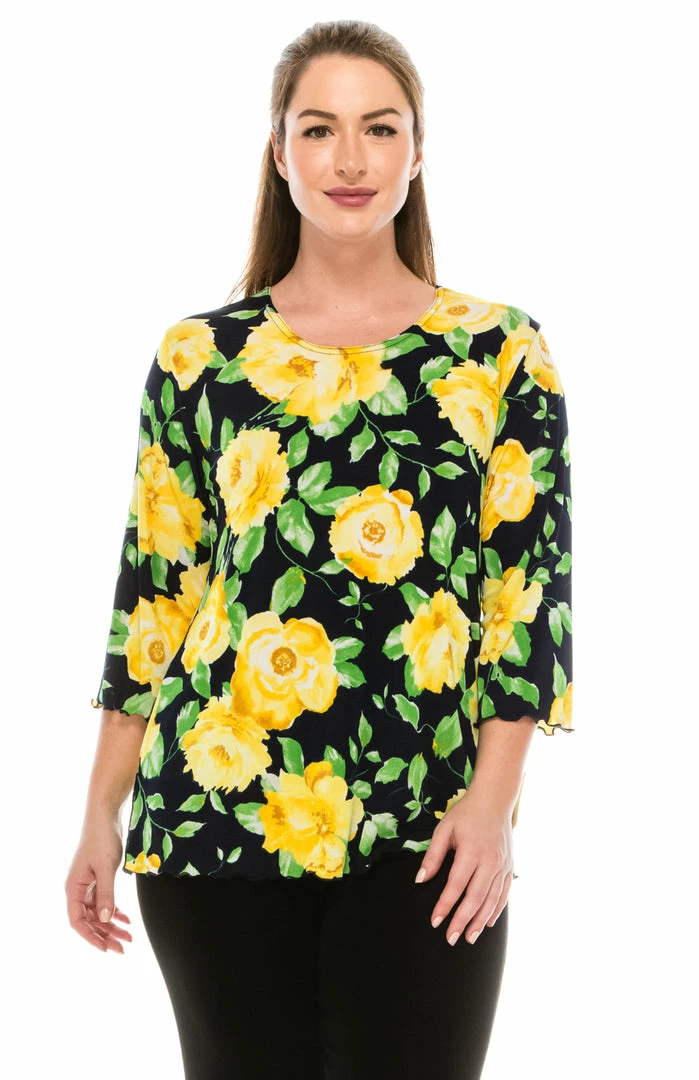 Tops Jostar Women’s Stretchy Merrow Top 3/4 Sleeve Print Plus, 158BN-QXP-W020