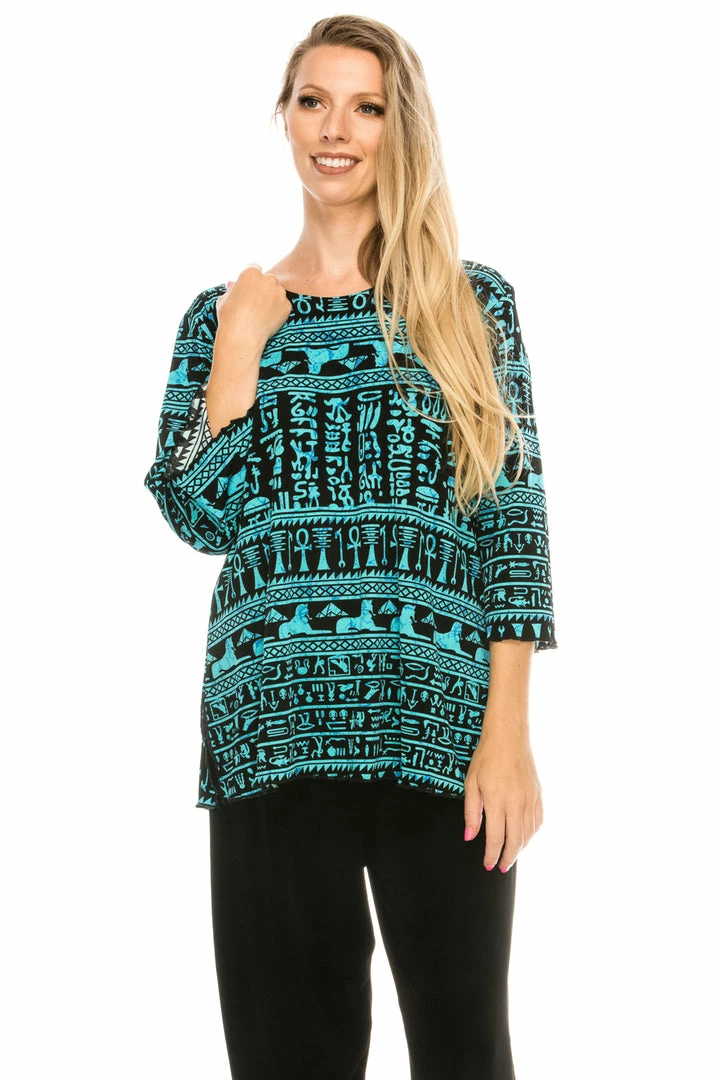 Tops Jostar Women’s Stretchy Merrow Top 3/4 Sleeve Print Plus, 158BN-QXP-W164