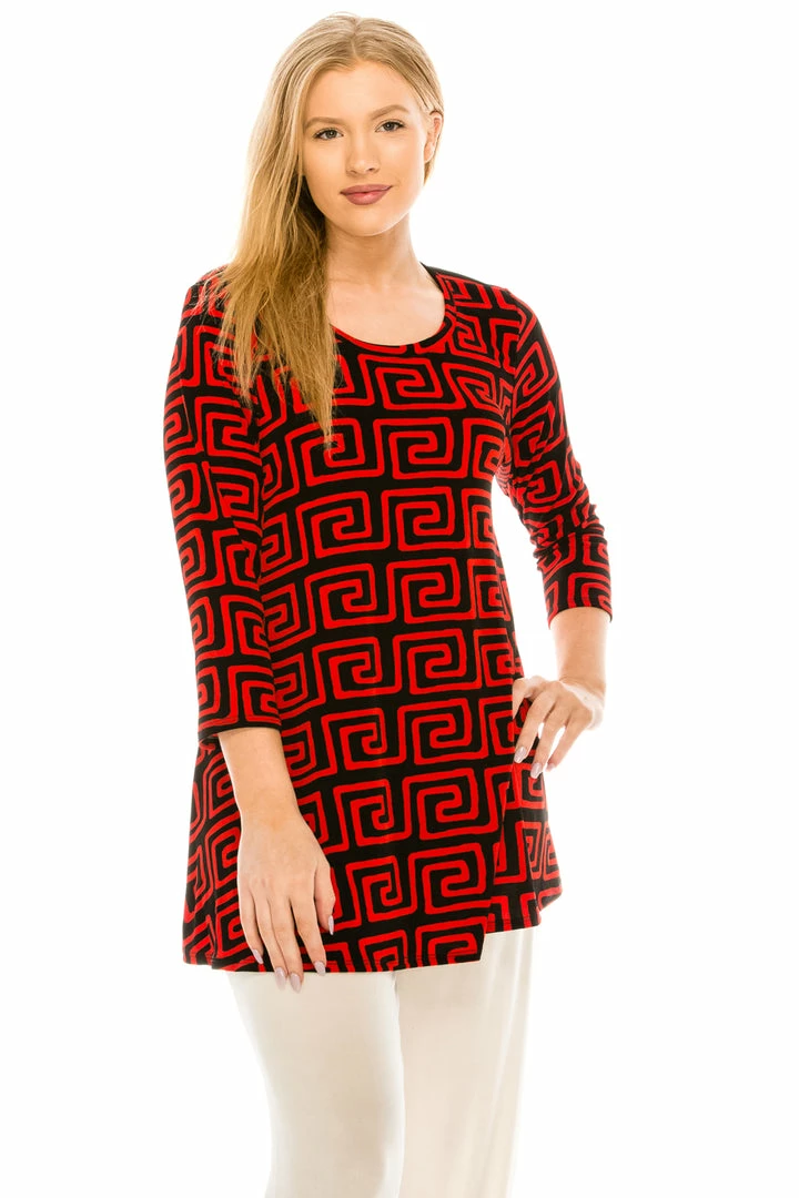Tops Jostar Women’s Stretchy Round Nk Band Tunic Top Quarter Sleeve Print, 345BN-QXP-W187