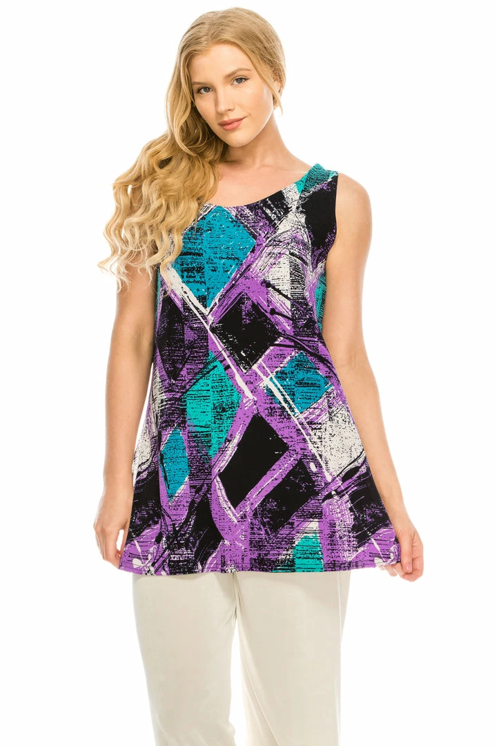 Tops Jostar Women’s Stretchy Vented Tunic Tank Top Plus Print, 241BN-TXP-W180